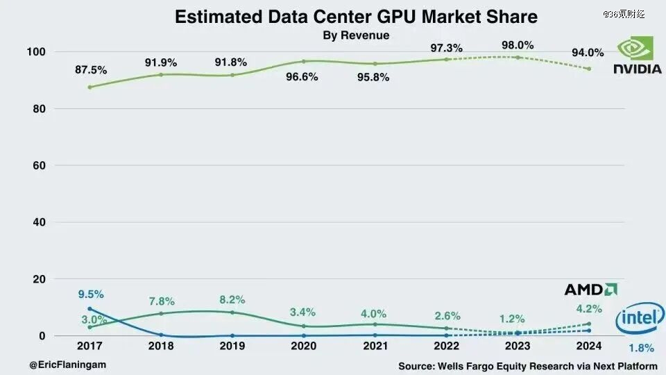 图:数据中心GPU市场份额变化 数据来源:富国银行,36氪整理