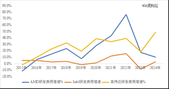 图:AMD、Intel、英伟达研发费用增速对比 数据来源:wind,36氪整理