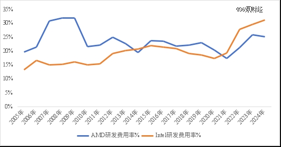 图:AMD和intel研发费用率对比 数据来源:wind,36氪整理