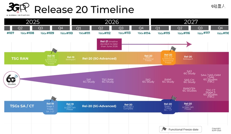 而今年和明年的 3GPP 讨论 release 20 和 release 21 刚好是 5G 转向 6G 的重要节点。
