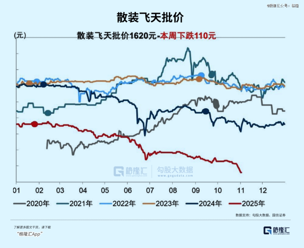 53度飞天茅台散瓶批发价跌破1600元,报1640元的历史新低,较年初跌超31%。