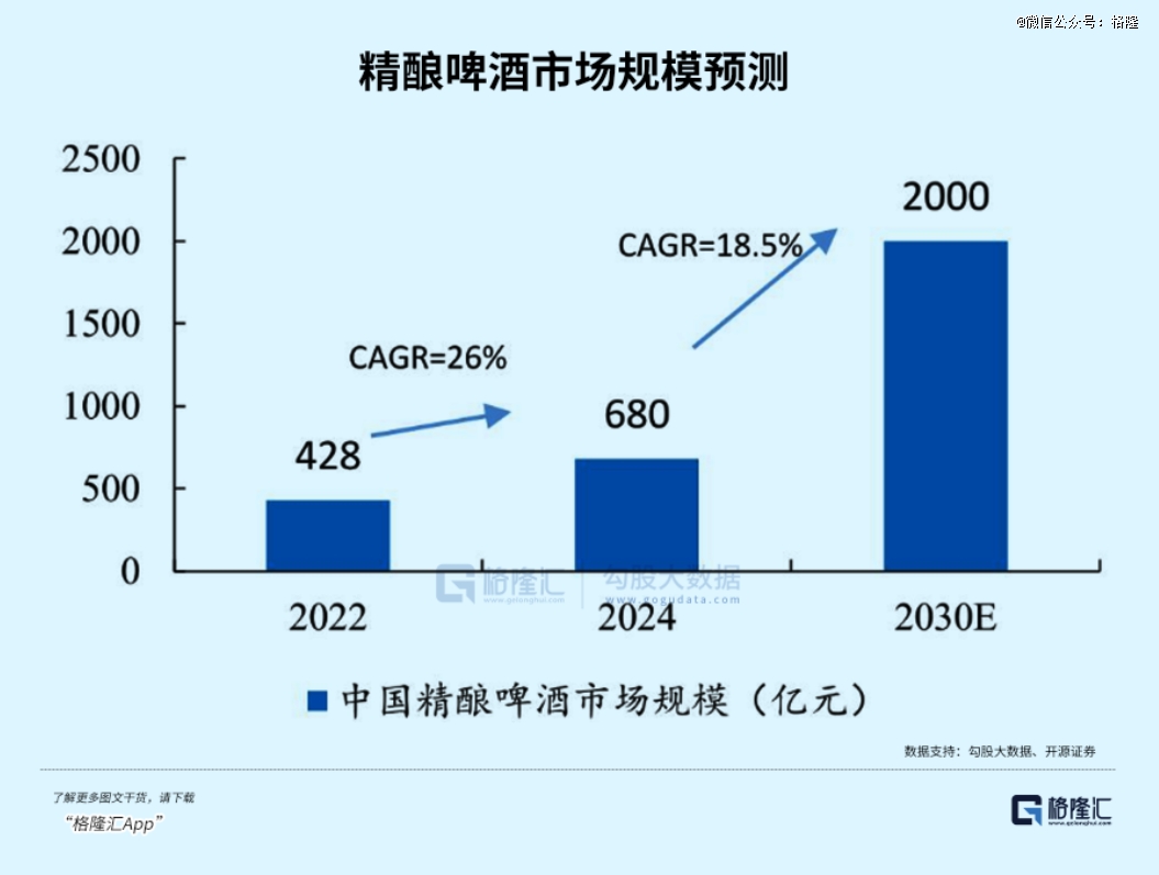 2025年,精酿企业数量突破7400家,半年新增1300多家,相当于每天诞生7家新精酿厂。市场规模更是冲到1300亿元,年增17%。