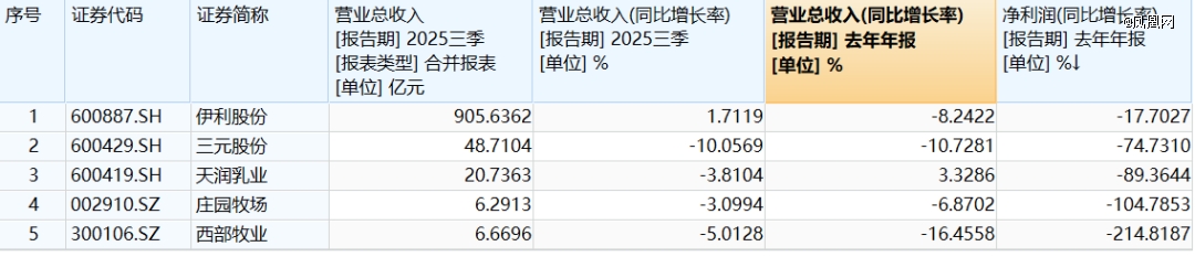 即便是营收保持微增的行业龙头伊利股份,也并非高枕无忧。其增长背后隐藏着核心业务萎缩的危机,作为营收基石的液体乳业务在第三季度同比下滑了8.8%,同时公司净利润出现下滑,这表明其面临着不小的盈利压力。