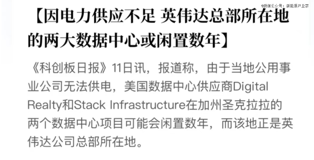 而英伟达总部所在地的两大数据中心,也因电力供应不足可能将闲置数年。