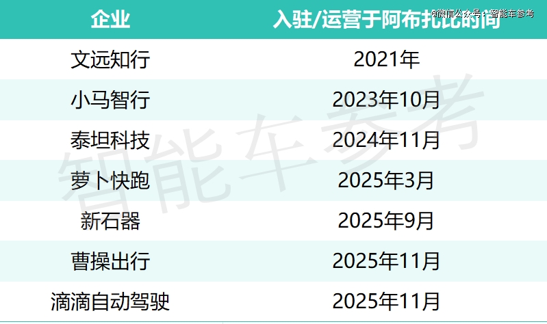 智能车参考不完全统计,到目前为止,官宣入驻阿布扎比的无人车玩家,已经有至少7家: