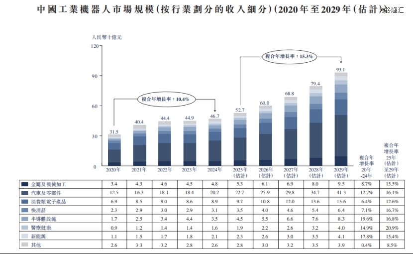 公司的机器人产品下游应用领域广泛,包括金属及机械加工、汽车及零部件、电子产品、新能源、消费品及医疗健康。