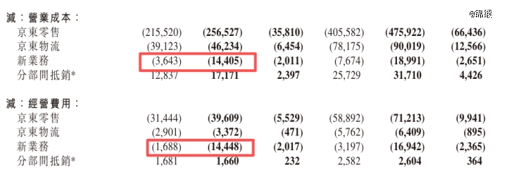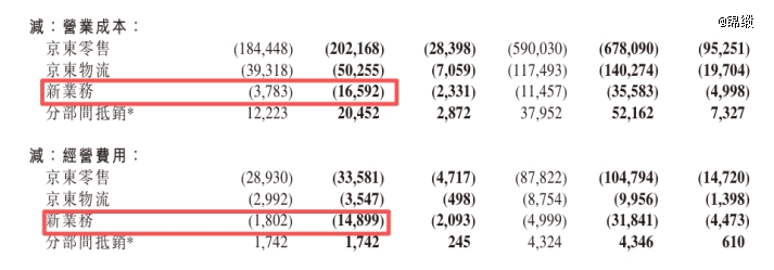 图:京东Q3新业务营业成本及经营费用,来源:企业财报