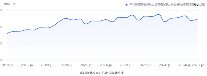 图:实物商品网上零售额占社零比重,来源:中经数据