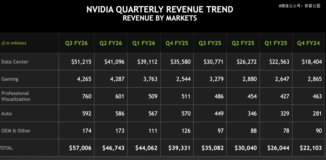 英伟达之所以能屡次刷新纪录,离不开 Blackwell 架构芯片的全面量产和交付加速。财报信息显示,GPU 业务贡献了 430 亿美元营收,而数据中心业务更是飙升至 512 亿美元,同比增长 66%。