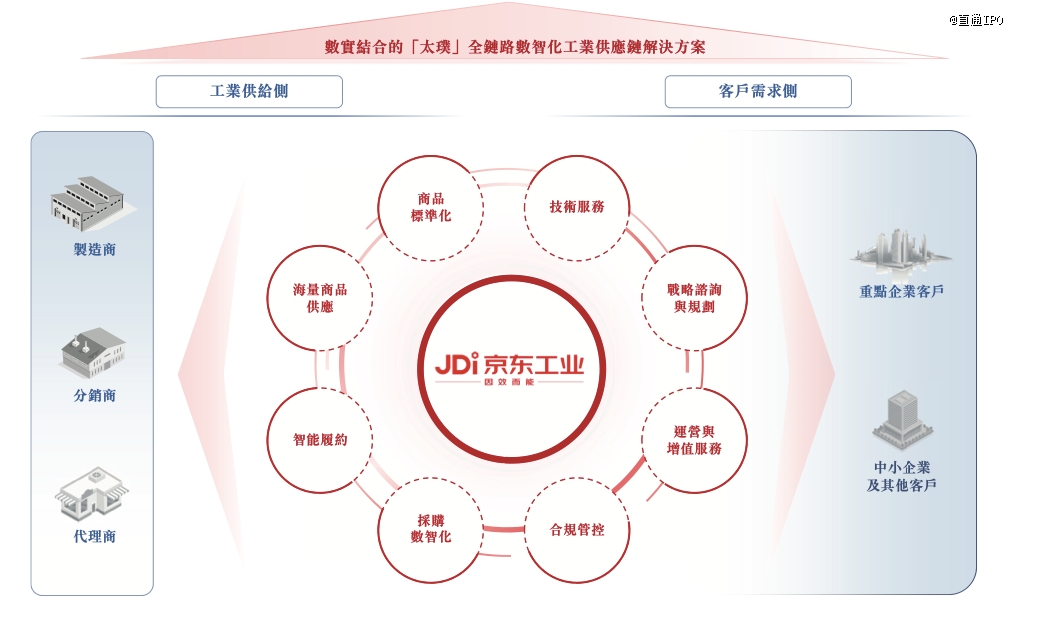 招股书显示,作为工业供应链技术与服务提供商,京东工业通过践行变革性的工业供应链数智化转型,帮助客户实现保供、降本、增效及合规。
