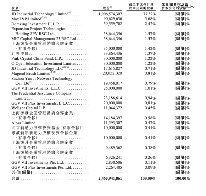IPO前,刘强东通过京东集团、Max I&P Limited等实体,合计控制约82.52%投票权。其中,京东集团通过其全资子公司持股77.32%;刘强东则通过Max I&P Limited持股3.68%。