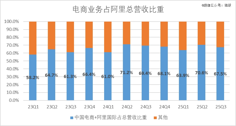 据2025财年数据显示,淘天集团贡献了集团约45%的营收,整个电商板块(中国电商+阿里国际)营收占比更是常年维持在60-70%,不仅自负盈亏,更承担着为云业务、AI研发等长期投入输送现金流的关键使命。