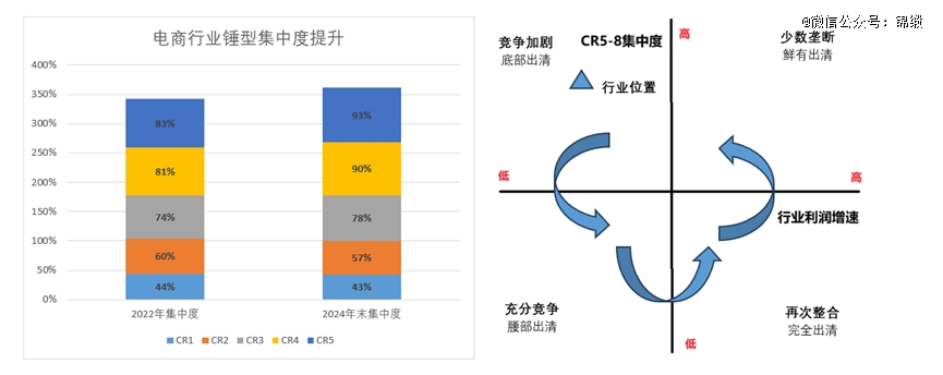 国信证券研究显示,2022年国内电商CR2集中度为60%,CR5为84%;而截至今年年初,CR2已降至57%,CR5则飙升至93%,行业呈现出头部集中、尾部出清的“锤型”竞争格局。