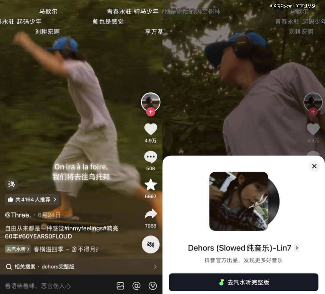在过去,很多人会去酷狗、QQ音乐或者网易云音乐搜索这首歌。但现在,抖音会引导你直接跳转到汽水音乐收听完整版。