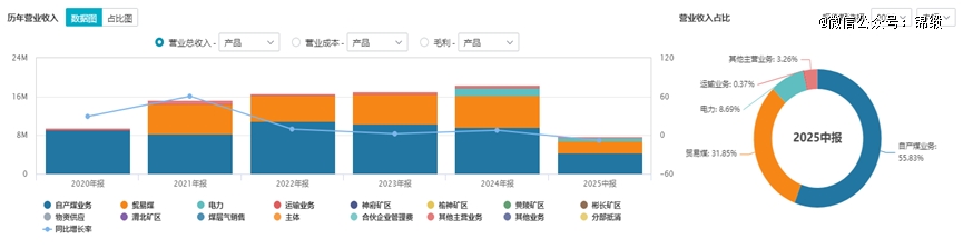 公司营收包括煤炭、电力、运输等,电力为24年并购新增板块,煤炭板块在营收中占比88%左左右,包括自产煤与贸易煤,贸易煤多来自其控股集团陕煤化工集团旗下煤炭开采板块的非上市子公司,少部分来自其他煤炭经销商。
