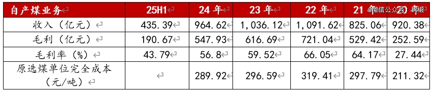 图:陕西煤业自产煤业务分年度营收、毛利率及完全成本数据