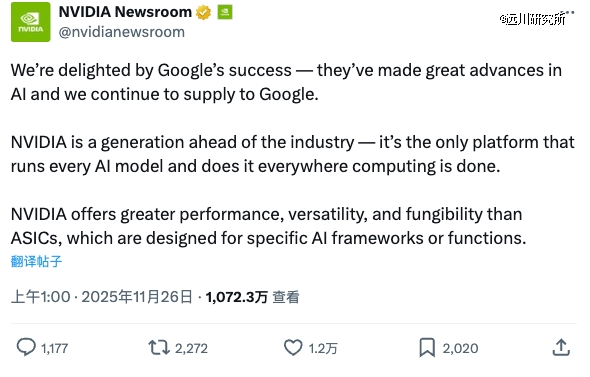 上周谷歌横扫科技媒体头条,如坐针毡的英伟达官方X账号发了条推文,主打先礼后兵,一边点赞一边阴阳怪气。