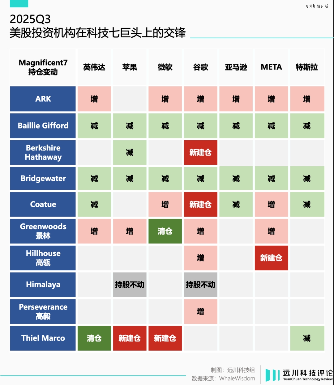 恰逢美股投资机构更新完三季度持仓表格13F,众机构对七姐妹的持仓变化成了关注焦点。总结来看,主打卖英伟达买谷歌的集体叛变: