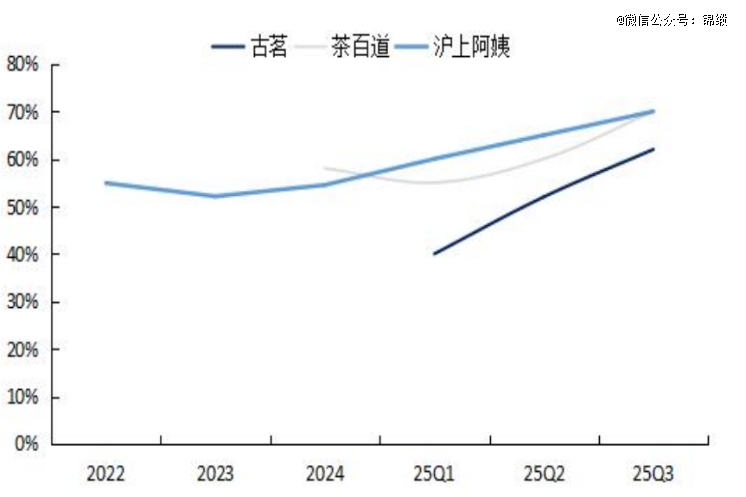这意味着,未来国内与海外市场将实现五五开的格局。国内企业也在把握这个风口,蜜雪、茶姬、古茗等企业实现了海外的高速复制,比如茶姬2025年第三季度海外GMV超3亿元,连续两季度同比增长超75%,,展现出强劲的海外扩张势能。