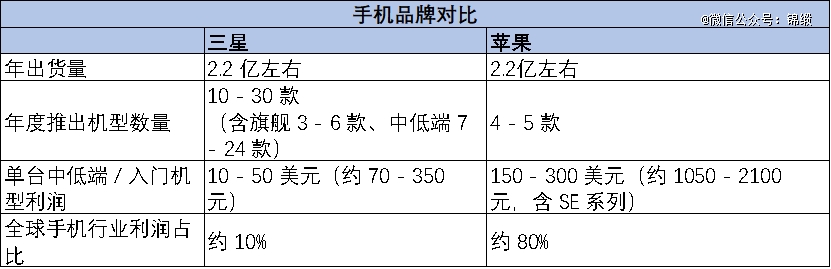 产品力带来的价值,智能手机行业早已给出生动案例。坚持“精品SKU”、走高质量发展的苹果,和机海战术发明者三星,可能10年前仍在同一水准,而经过多年的发展,三星和苹果一年都卖2亿部出头的手机,但是更为“辛苦”的三星,手机利润不到苹果的1/8。