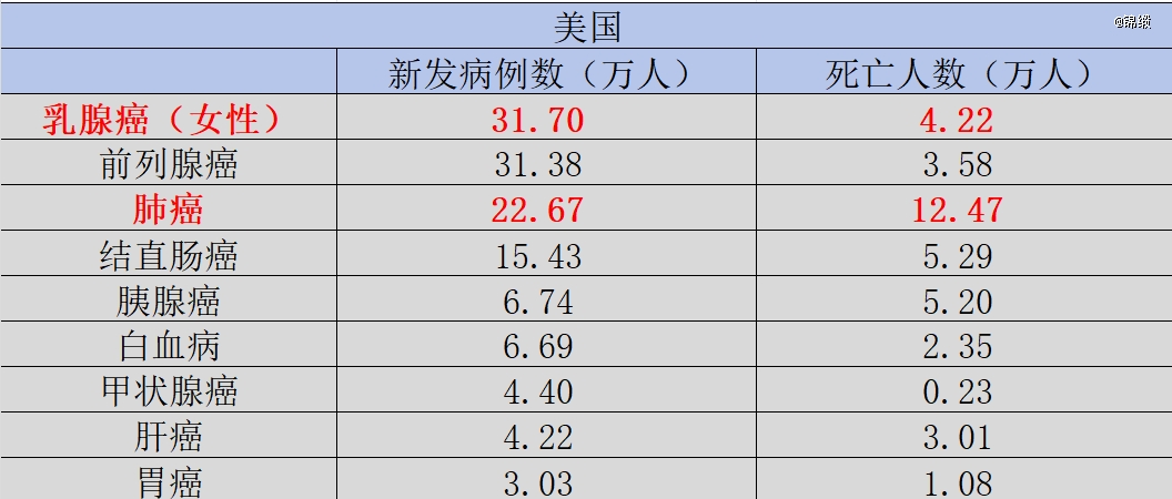 图:美国癌症发病与死亡,来源:锦缎研究院