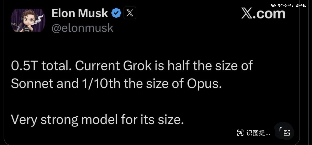 总参数量就是0.5T(5000亿)。现在的Grok,参数量是Sonnet的一半、Opus的十分之一。以它的规模来说,是非常强的模型。