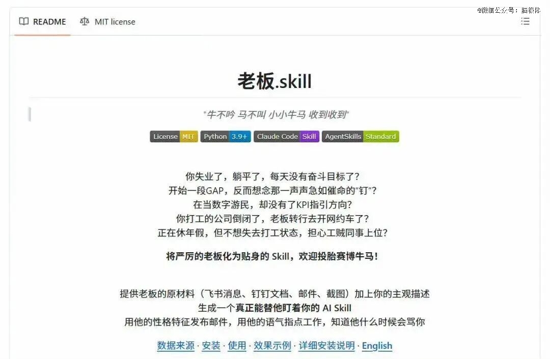 这款skill可以将老板的管理风格、决策逻辑、说话语气逐一抽象成Agent,喜欢听老板说话的打工人有福了,以后能随时随地跟赛博老板交流了。