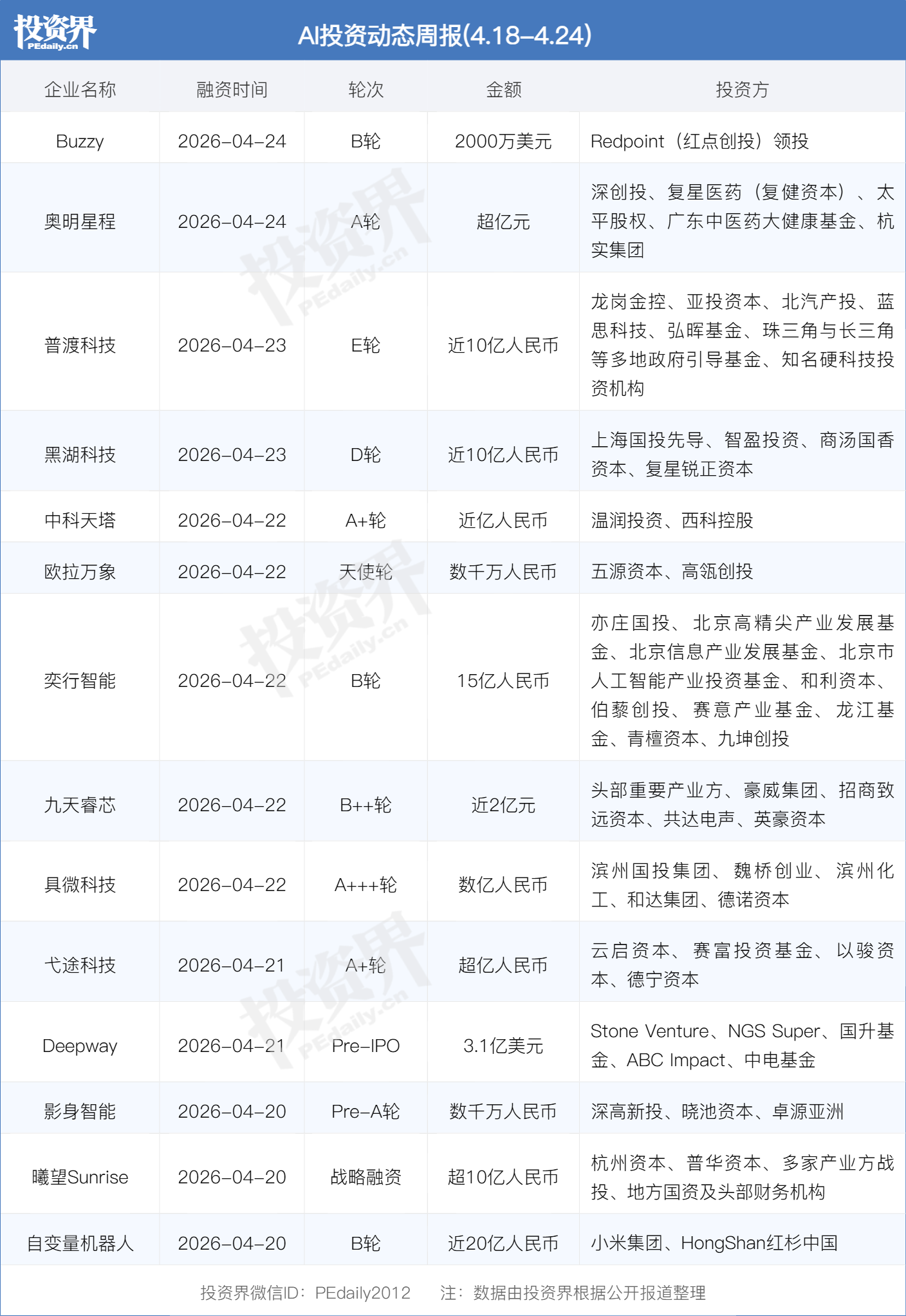 投资方:亦庄国投,北京高精尖产业发展基金,北京信息产业发展基金,北京市人工智能产业投资基金,和利资本,伯藜创投,赛意产业基金,龙江基金,青檀资本,九坤创投