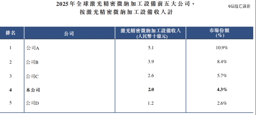 2025年全球激光精密微纳加工设备前五大公司,来源:招股书