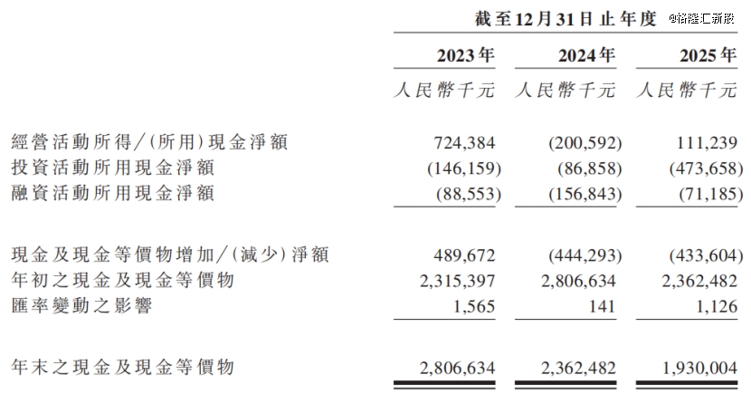 截至2025年年底,公司账上的现金及现金等价物约19.3亿元,较2023年末的28亿元大幅下降。