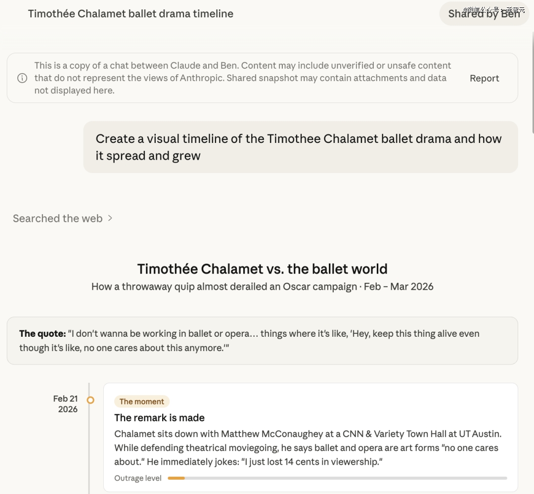 Inc.的记者做了个测试:让Claude生成Timothée Chalamet争议事件的交互式时间线。