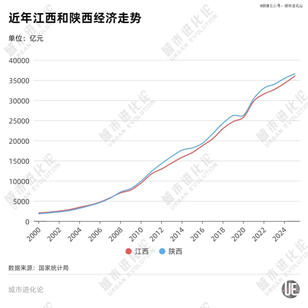 2025年,江西与陕西的GDP差值从最高时1600亿元缩小至仅500亿元左右,贴身竞速让两省“攻守战”悬念再起。