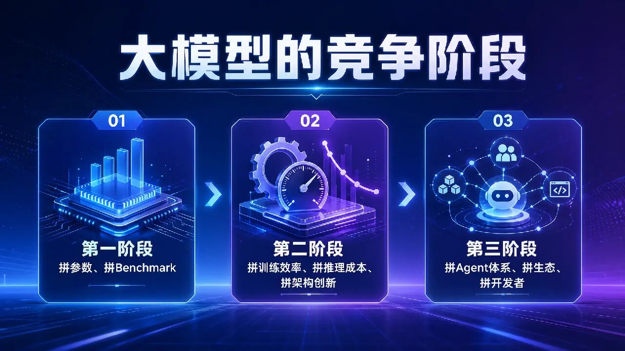 第二阶段是“拼训练效率、拼推理成本、拼架构创新”。正是当下所处的赛段,也是算力成本倒逼下的必然结果。