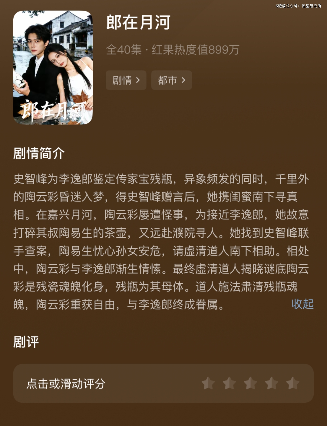 这样的轻量化创作模式,已经有不少行业从业者落地实践。据公开报道,瑞安市影视家协会主席江海独立完成的AI真人微短剧《郎在月河》,整部作品时长88分钟,全程仅由江海一人完成所有制作环节,耗时三个多月,整体投入成本仅约1万元。