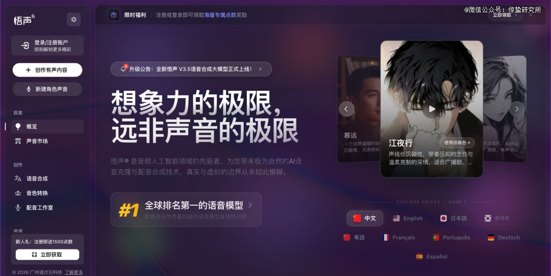 在广州,一家名为烁谷科技的公司,自研“悟声”语音合成算法与“元语文字”将传统配音成本压缩至不足千分之一,仅需3秒有效样本,可实现99.5%以上相似度的音色克隆,还能还原喜悦、悲伤、哭泣等真人情绪细节。这意味着,AI语音完全能够适配泛娱乐配音、数字人交互、企业出海多语种营销等多种场景。