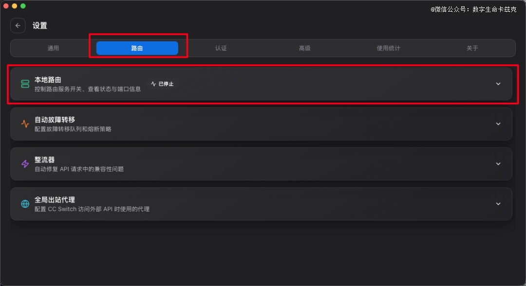 找到路由服务,先打开本地路由的开关,把本地代理服务跑起来。