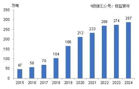 2015年-2024年我国牛肉进口总量。(图/中国肉类协会)