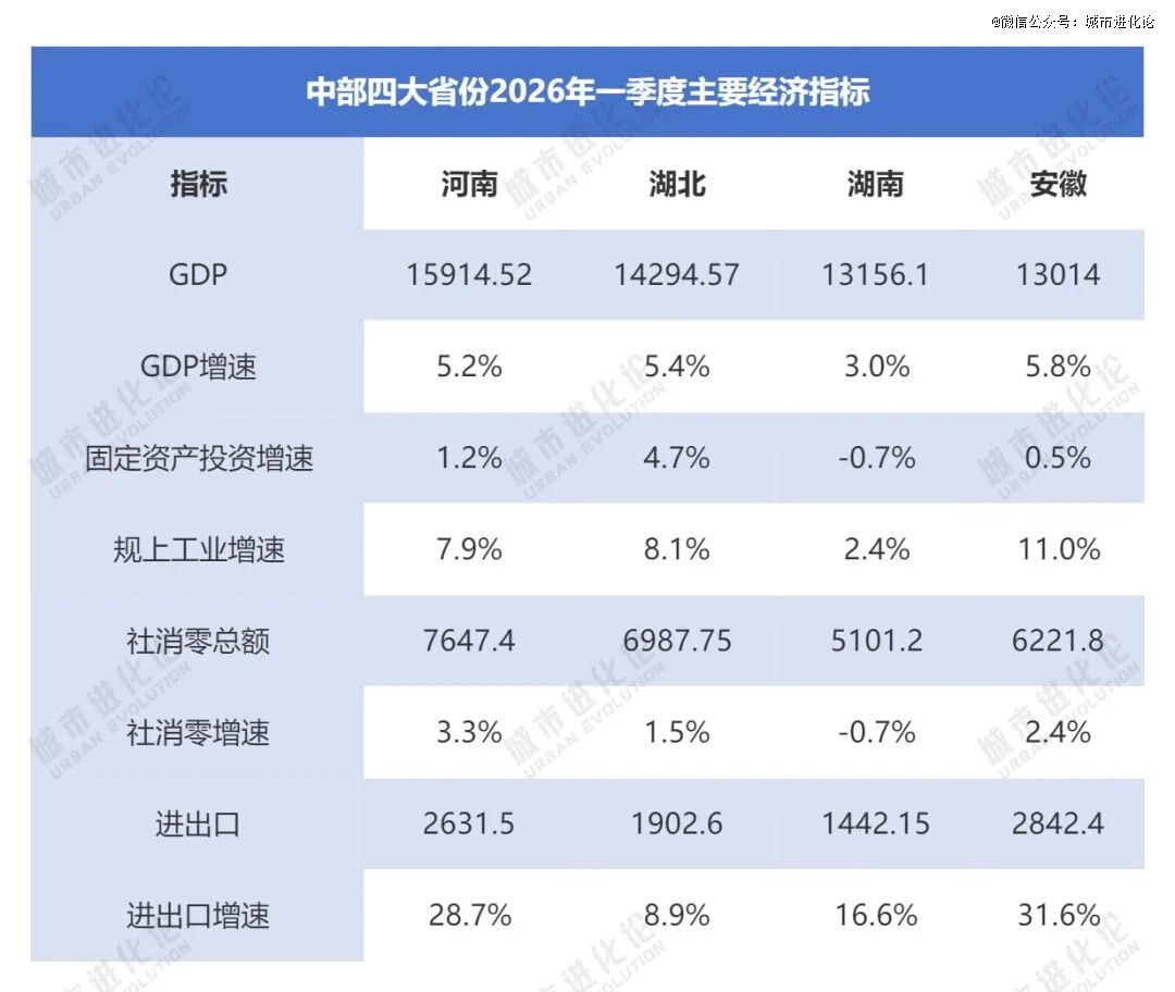 此外,在工业表现上,安徽、湖北、河南规上工业增速分别为11.0%、8.1%和7.9%,湖南则仅为2.4%。