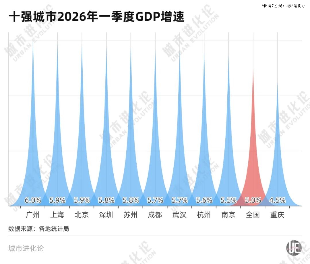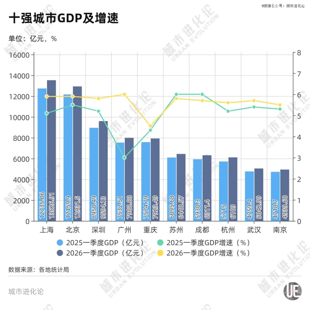 处在“十五五”开局首季的关键窗口期,*城市整体经济发展势头强劲。尤其是历经一轮深刻增长动力切换的一线城市集体提速,增速全部站稳5.8%及以上。