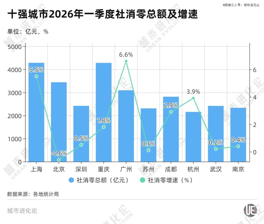 深圳、苏州、武汉、南京消费增速则均不到1%,北京则仍未转正。